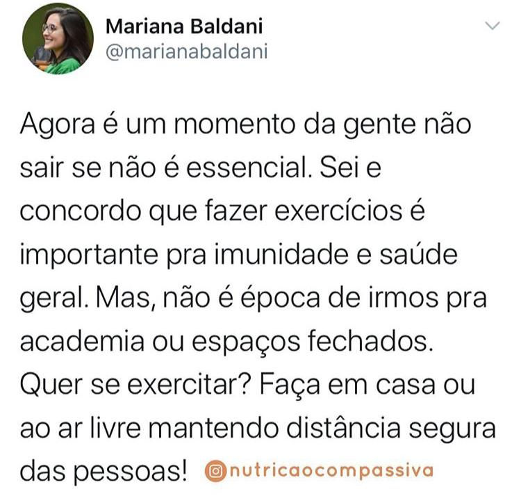 Respeite o distanciamento socialMariana Baldani7 de out. de 20201 min de leituraMarque aqui a amada que insiste em ir pra academia em tempos de alta propagação do coronavírus (ou compartilhe a indireta).